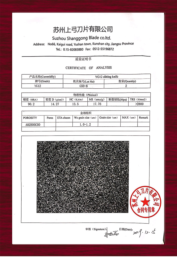 鎢鋼刀檢測報告