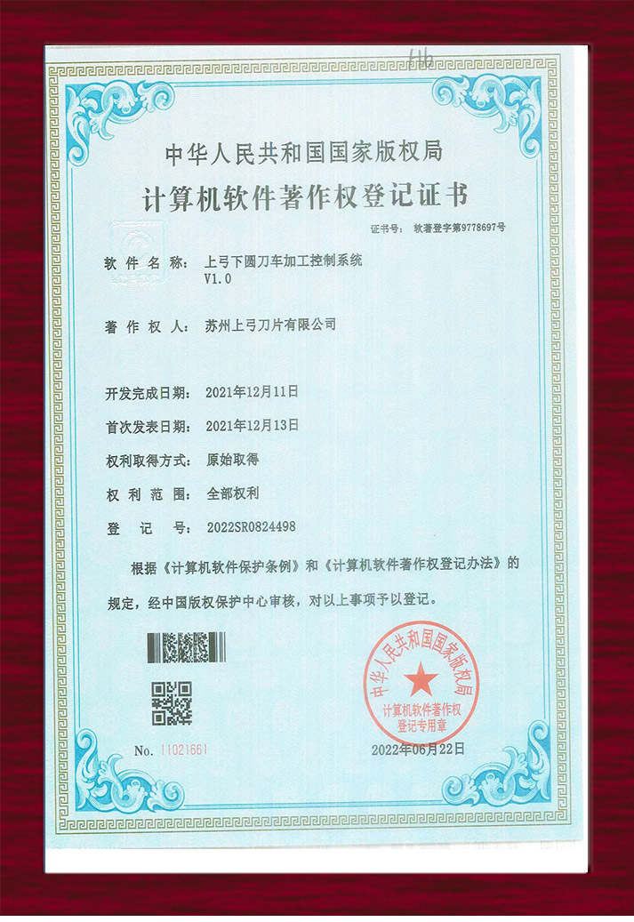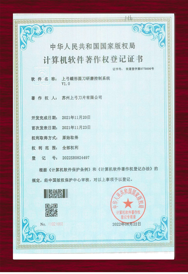 計算機軟件著作權(quán)登記證書-碟形圓刀研磨控制系統(tǒng)