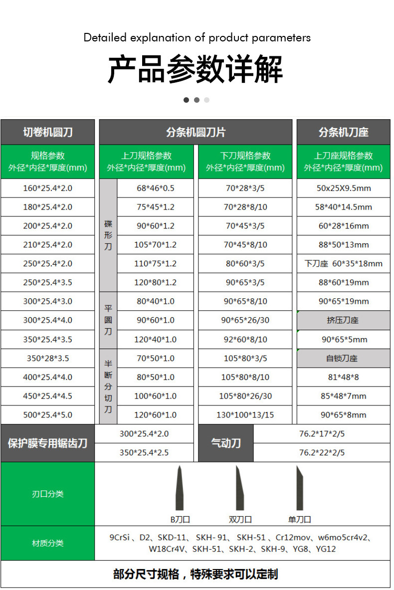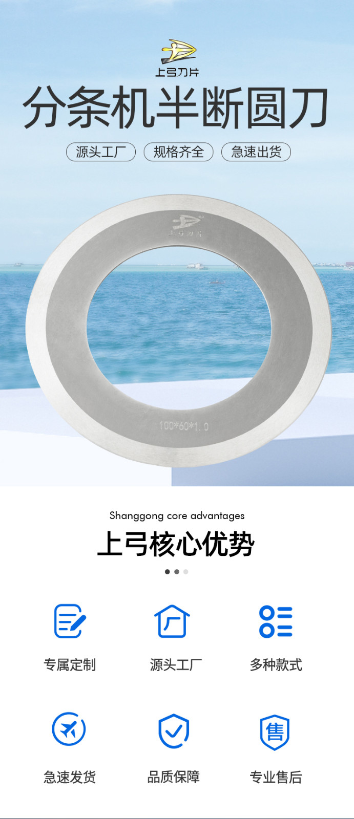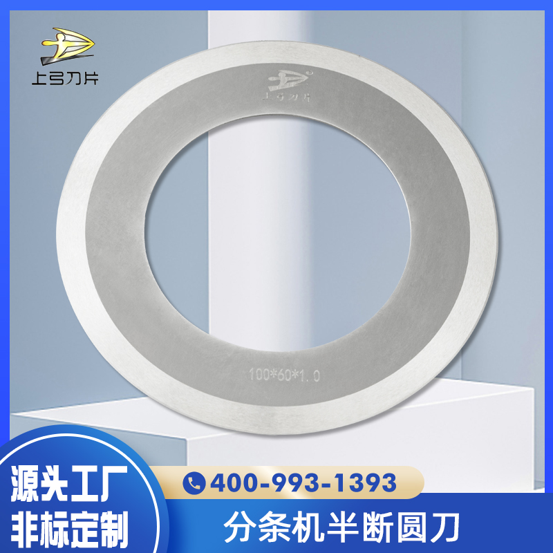 半斷分條機(jī)刀片屬于一種非常精密的刀具,外徑累計(jì)公差在正負(fù)0.02MM(人的頭發(fā)正常在0.08MM)主要是用于兩層材料在分切是底部一層不斷上層材料斷的分切加工,目前只有兩種材質(zhì),SKH-51和鎢鋼材質(zhì),鎢鋼材質(zhì)的缺點(diǎn)硬度高脆,調(diào)刀時(shí)容易碎口,故鎢鋼相較于SKH-51價(jià)格稍微低一點(diǎn),但是高硬度又給它帶來了不錯(cuò)的耐磨性。